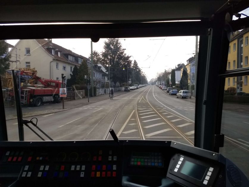 Ab der Ankunft am Südbahnhof bin ich fast nur noch Straßenbahn gefahren: Zuerst mit der 16 nach Oberrad Balduinstraße, wieder zurück und weiter bis Adalbert-/Schloßstraße. Beide diese Fahrten, wie der Zufall es so wollte, schon wieder in Wagen 002. Kurz einen Block gelaufen und dann mit der 17 Nauheimer Straße – Rebstockbad. Ich muss sagen, ich habe den 002 seitdem etwas ins Herz geschlossen.